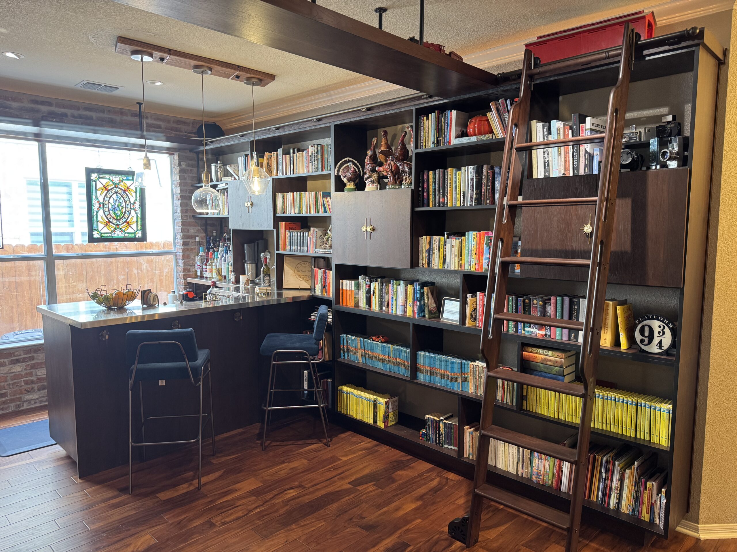 Library-Bar with rolling Library Ladder and elevated electric train track